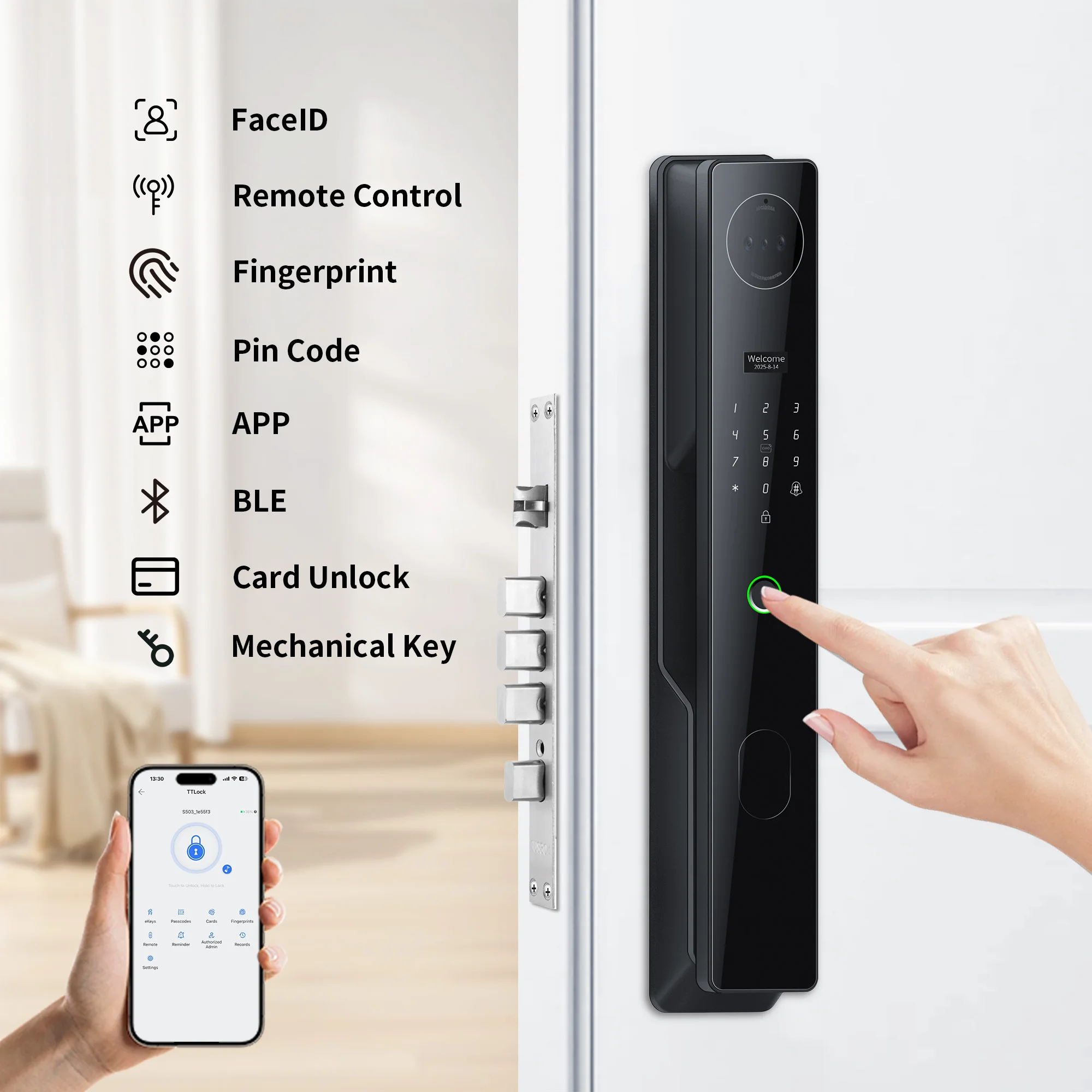 Multiple Unlock Methods: Choose from fingerprint, password, card, key, or app control for flexibility.