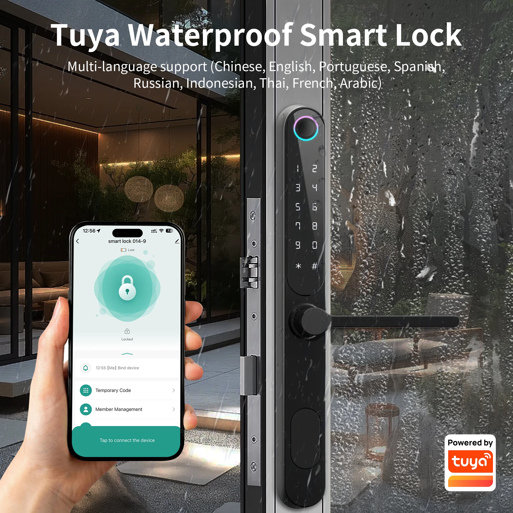 قفل ذكي مقاوم للماء من كايسستار مع تقنية Tuya للأبواب الفولاذية/الألومنيومية/الخشبية، مصنوع من سبيكة ألومنيوم، ويُدار عبر تطبيق واي فاي والتحكم الرقمي بلوحة المفاتيح