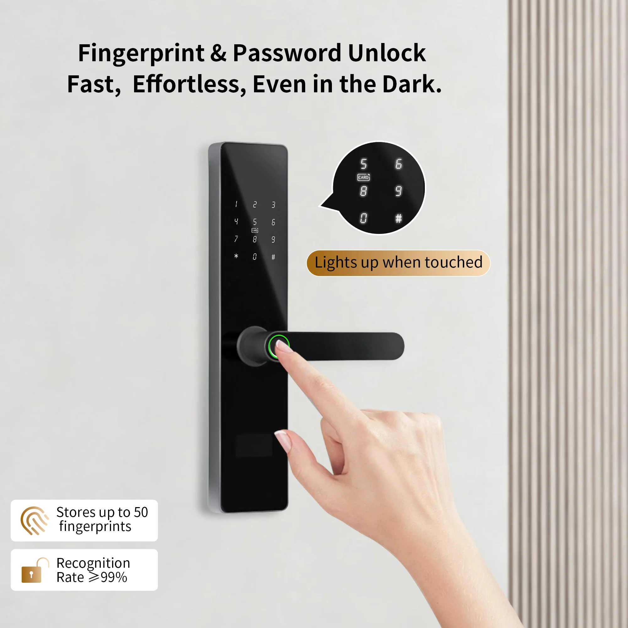 कई अनलॉक विधियाँ: लचीलेपन के लिए फिंगरप्रिंट, चाबी, पासवर्ड या कार्ड से चयन करें।