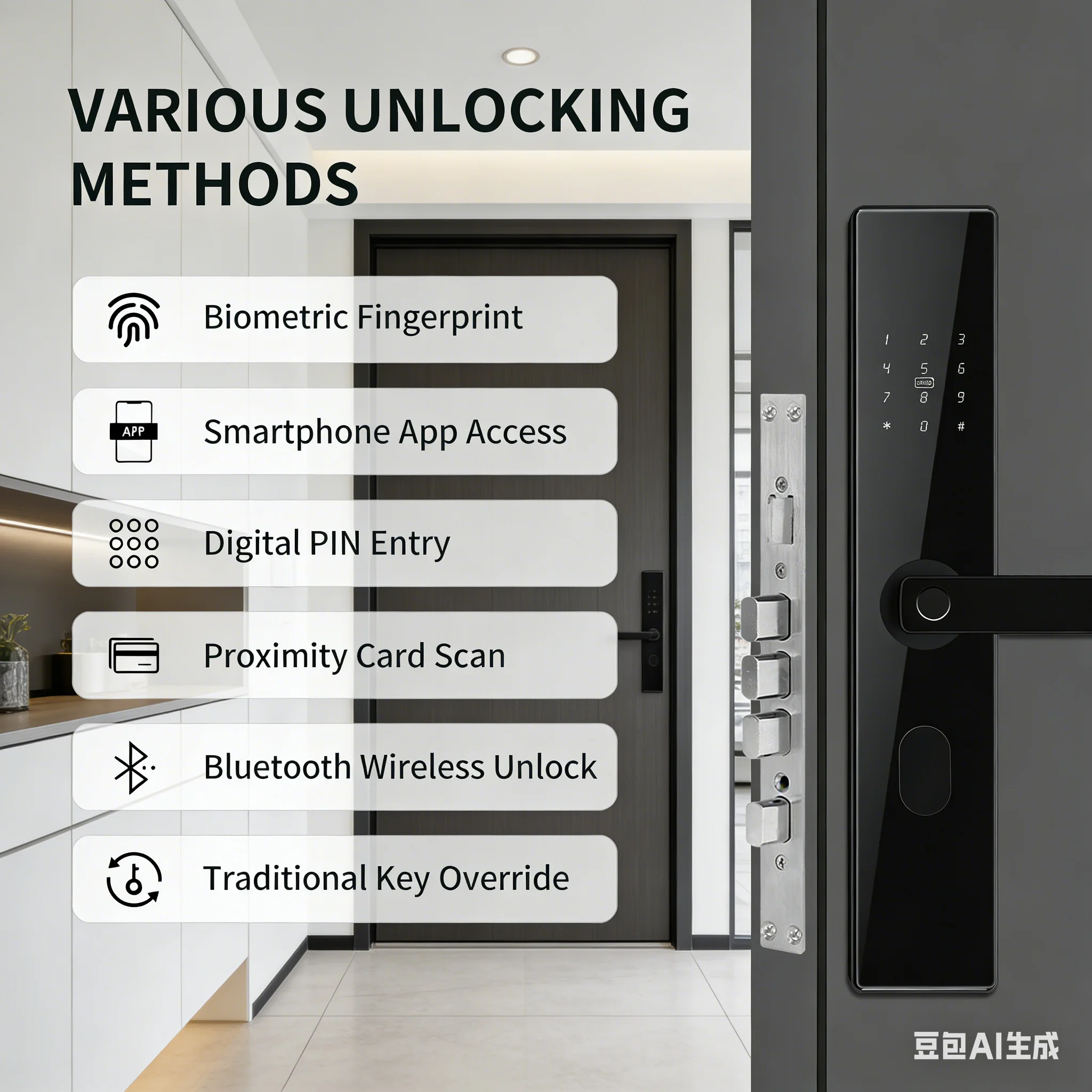 Multiple Unlock Methods: Choose from fingerprint, key, password, or card for flexibility.