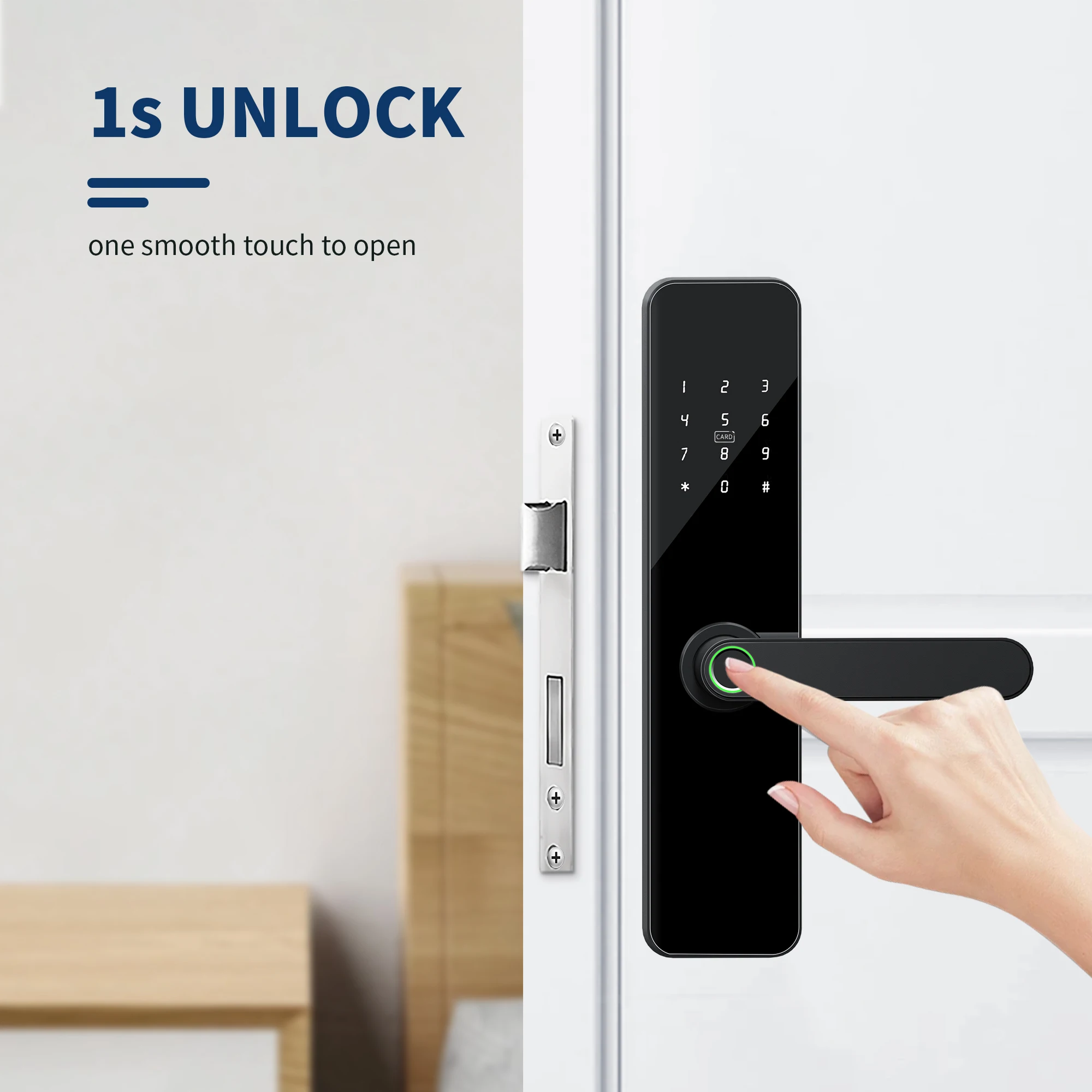 ล็อกอัจฉริยะสำหรับประตูไม้ ของ TTlock พร้อมระบบสแกนลายนิ้วมือทางชีวภาพ การเข้าใช้งานแบบไม่ใช้กุญแจ และการควบคุมผ่านคลาวด์ สำหรับประตูเหล็กและอลูมิเนียมอัลลอยด์ เพื่อความปลอดภัยของบ้าน ยี่ห้อ Kaisstar