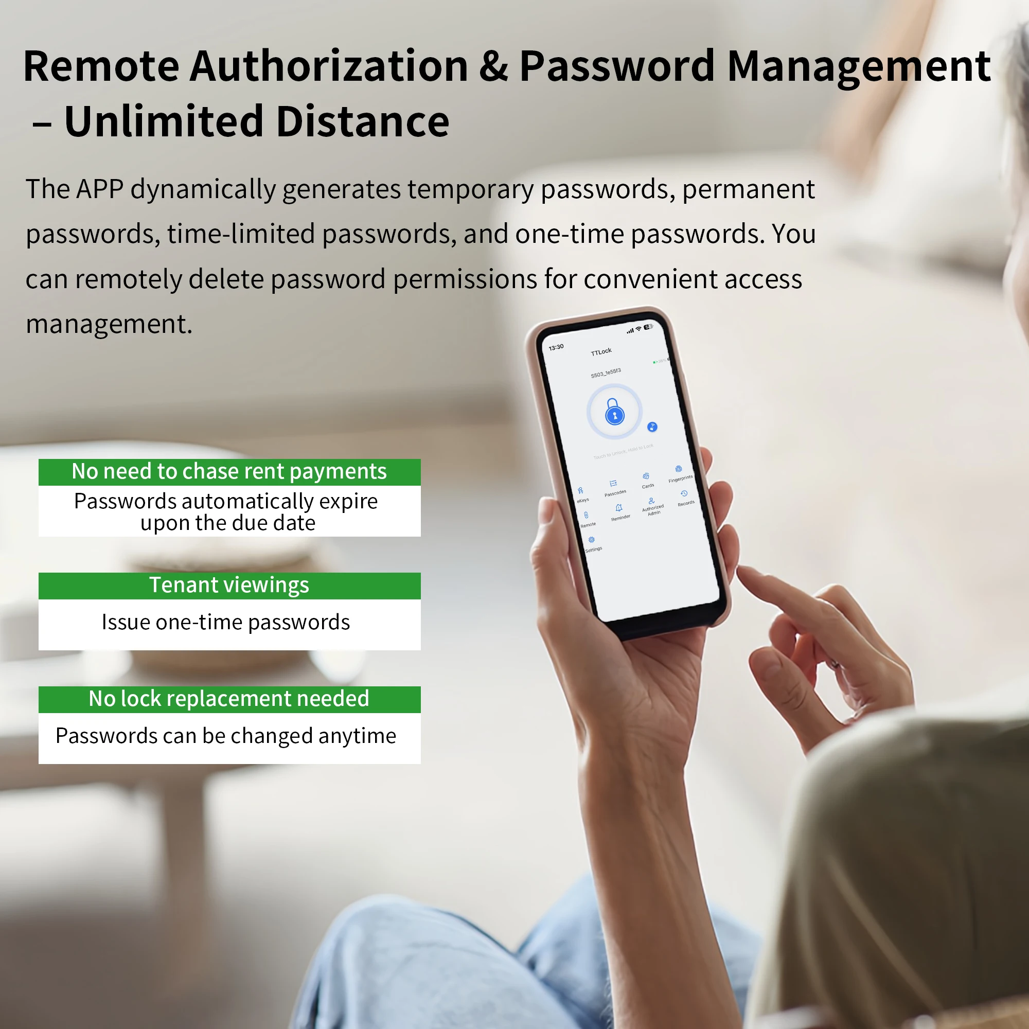 TTLock App Compatibility: Easy setup and control through smartphone.